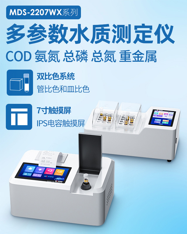 COD水質(zhì)測定儀是基于快速消解分光光度法設(shè)計制造的。COD水質(zhì)測定儀的檢測量程為0-15000mg/L(分段),檢測下限為0.7mg/L。